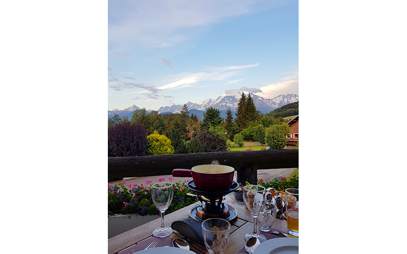 Good food, good wine, good feeling.... to be consumed without moderation facing the Mont Blanc!
